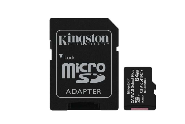 Carte micro SDXC Kingston 64 Go classe 10 100 Mo/s canvas select plus + adaptateur SD