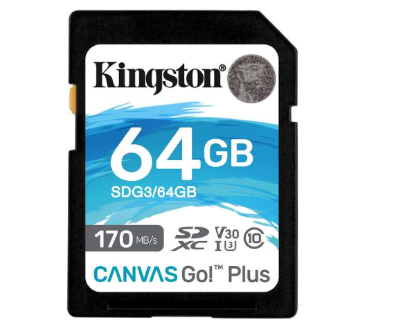 Carte SDXC Kingston 64 Go UHS-I U3 V30 classe 10 170 Mo/s Canvas Go Plus