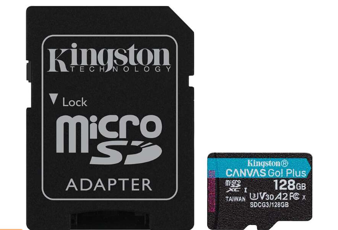 Carte micro SDXC Kingston 128 Go UHS-i U3 V30 classe 10 170 Mo/s Canvas Go Plus avec adaptateur