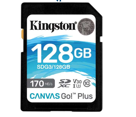 Carte SDXC Kingston 128 Go UHS-I U3 V30 classe 10 170 Mo/s Canvas Go Plus