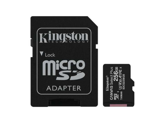 Carte micro SDXC Kingston 256 Go classe 10 100 Mo/s canvas select plus + adaptateur SD