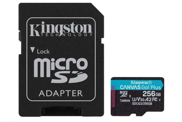 Carte micro SDXC Kingston 256 Go UHS-I U3 V30 classe 10 170 Mo/s Canvas Go Plus avec adaptateur