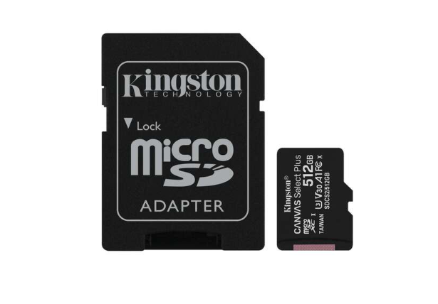 Carte micro SDXC Kingston 512 Go classe 10 100 Mo/s canvas select plus + adaptateur SD